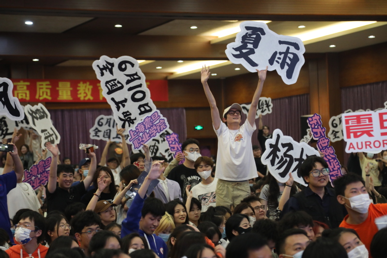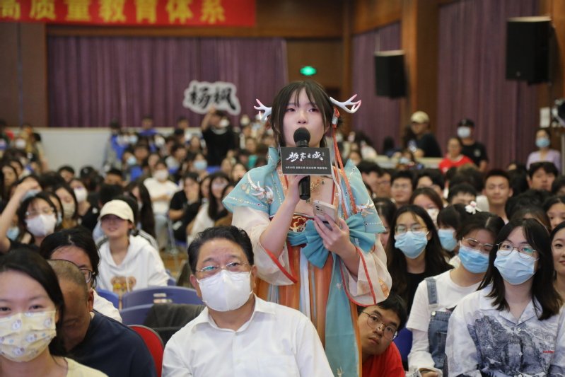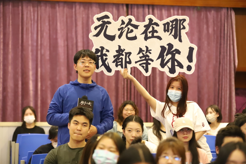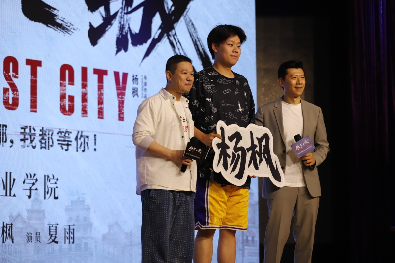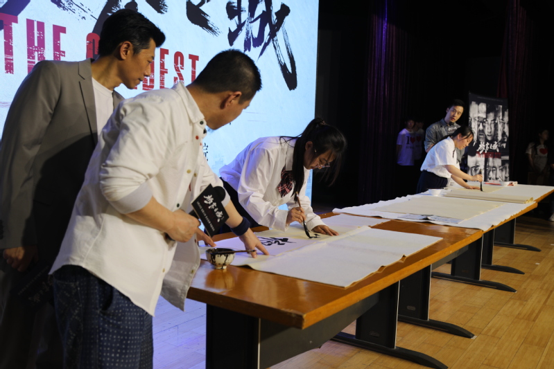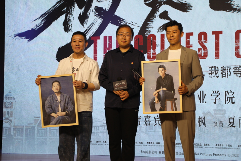 聽(tīng)說(shuō)夏雨老師在書(shū)法藝術(shù)上頗有造詣,五年一貫制的兩位同學(xué)上臺(tái)向夏雨老師求教,并手書(shū)了“極寒之城”四個(gè)字作為禮物送給夏雨老師和楊楓導(dǎo)演。