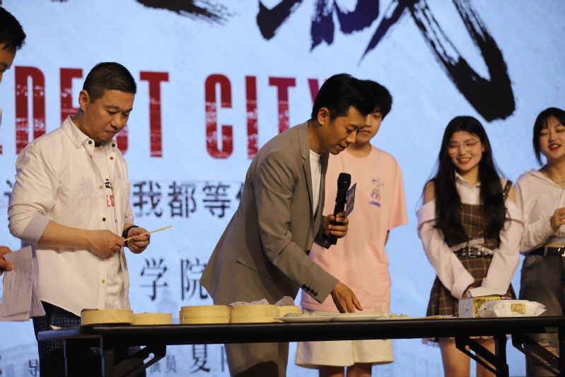 《極寒之城》主創(chuàng)團(tuán)隊(duì)與震旦師生的互動(dòng)環(huán)節(jié),將路演活動(dòng)推向了高潮。導(dǎo)演楊楓和演員夏雨老師介紹了影片拍攝、劇情結(jié)構(gòu)以及拍攝過(guò)程中的花絮趣事。東方電影學(xué)院的學(xué)生把這次路演活動(dòng)看做一次珍貴的學(xué)習(xí)機(jī)會(huì),現(xiàn)場(chǎng)同學(xué)積極向主創(chuàng)提問(wèn),主創(chuàng)們一一做了精彩的回答。主創(chuàng)人員還邀請(qǐng)三位同學(xué)上臺(tái)品嘗了上海名吃小籠包,現(xiàn)場(chǎng)歡樂(lè)不斷,氣氛熱烈。