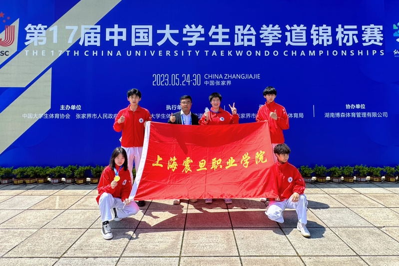 2023年5月30日,第17屆中國(guó)大學(xué)生跆拳道錦標(biāo)賽在湖南張家界收官。上海震旦職業(yè)學(xué)院跆拳道隊(duì)摘得乙組1金1銀。