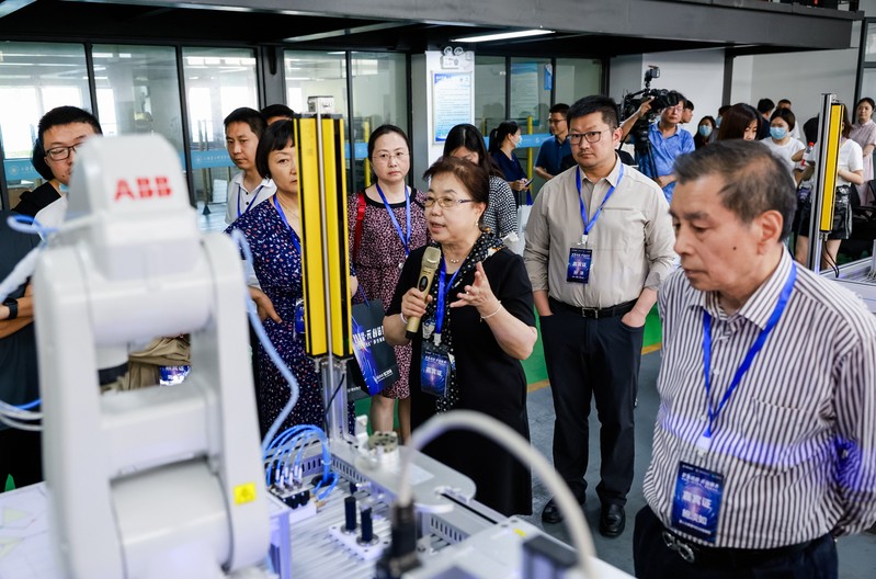 此次大會(huì)設(shè)置兩個(gè)分會(huì)場(chǎng),第一分會(huì)場(chǎng)為智能工程產(chǎn)業(yè)學(xué)院教學(xué)改革成果展示會(huì),向各位嘉賓介紹了智能產(chǎn)業(yè)學(xué)院基地機(jī)器人,舉行了中華人民共和國(guó)教育部“互聯(lián)網(wǎng)+中國(guó)制造2025促進(jìn)計(jì)劃項(xiàng)目”ABB實(shí)驗(yàn)實(shí)訓(xùn)與創(chuàng)新基地落成揭牌儀式,智能工程與元宇宙新技術(shù)校企合作-多方合作進(jìn)行圓桌交流溝通。