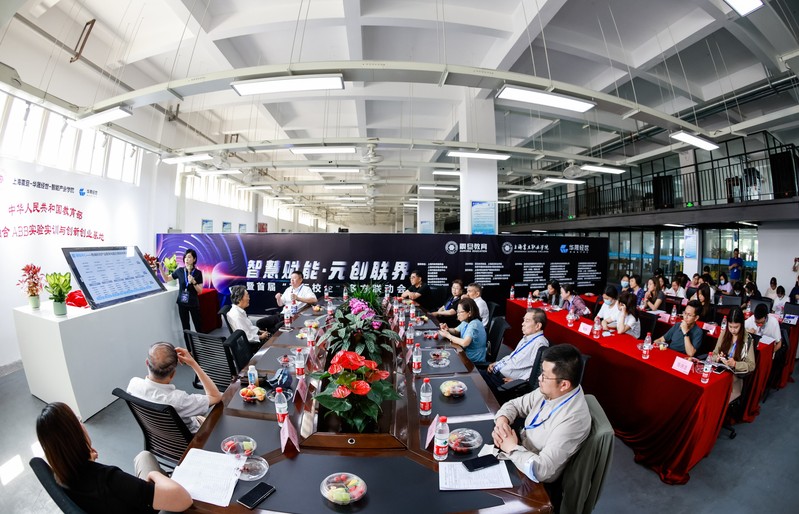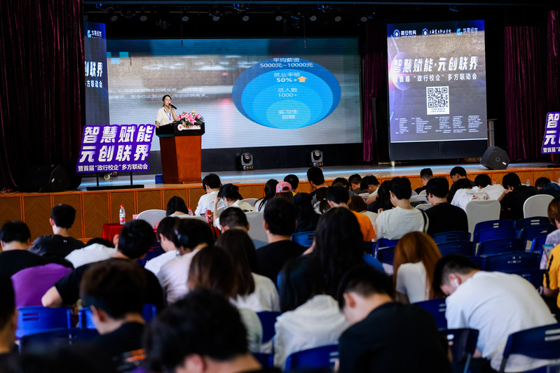 寶山高新產(chǎn)業(yè)園代表、行業(yè)協(xié)會(huì)代表、學(xué)校代表、企業(yè)代表一同為智慧賦能 元?jiǎng)?chuàng)聯(lián)界——首屆“政行校企”多方聯(lián)盟揭幕。