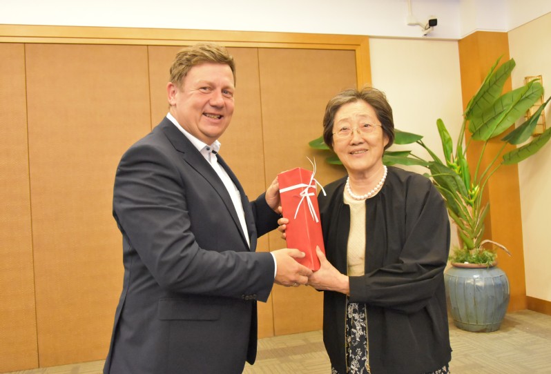 張沈董事長(zhǎng)對(duì)德國(guó)梅澤堡應(yīng)用技術(shù)大學(xué)代表團(tuán)一行的來(lái)訪表示熱烈的歡迎,并向嘉賓介紹了震旦教育集團(tuán)及上海震旦職業(yè)學(xué)院的基本情況。