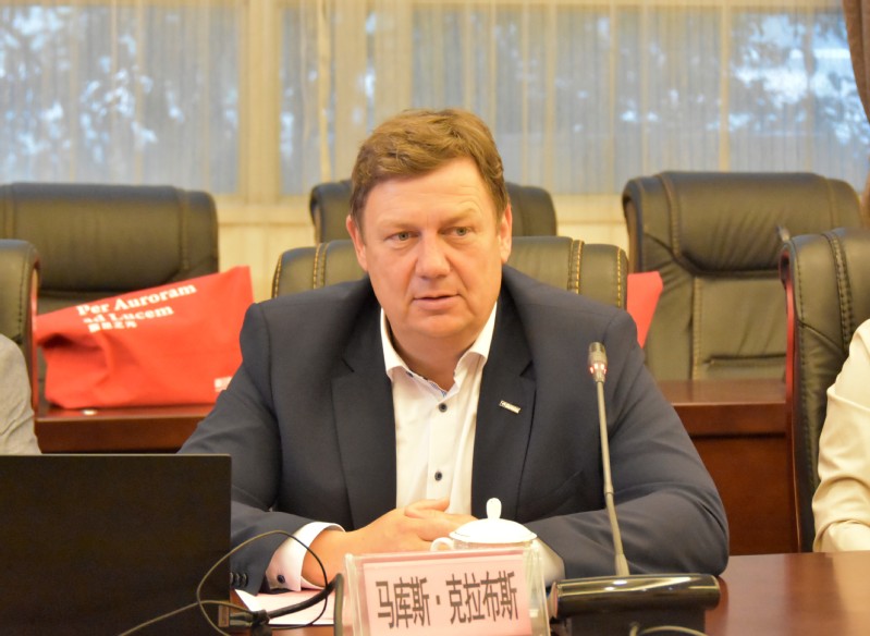 德國(guó)梅澤堡應(yīng)用技術(shù)大學(xué)校長(zhǎng)馬庫(kù)斯·克拉布斯博士首先感謝震旦給予他們的熱情周到的接待。其次,克拉布斯博士介紹了德國(guó)梅澤堡應(yīng)用技術(shù)大學(xué)的基本情況。該校位于具有千年歷史的德國(guó)薩克森·安哈爾特州的工業(yè)重鎮(zhèn)梅澤堡市,是德國(guó)的一所重點(diǎn)的理工類(lèi)大學(xué)。學(xué)校現(xiàn)設(shè)有機(jī)械工程學(xué)院,電信工程學(xué)院,經(jīng)濟(jì)科學(xué)學(xué)院,社會(huì)科學(xué)學(xué)院共計(jì)19個(gè)本科項(xiàng)目和11個(gè)碩士項(xiàng)目。該校也一直重視國(guó)際間的學(xué)術(shù)交流與合作,先后與世界各地的多所大學(xué)簽訂了校際合作協(xié)議,此次來(lái)中國(guó),也把震旦作為上海唯一的參觀院校。