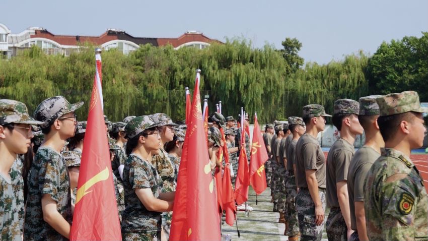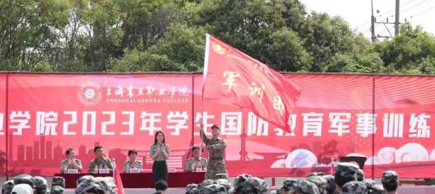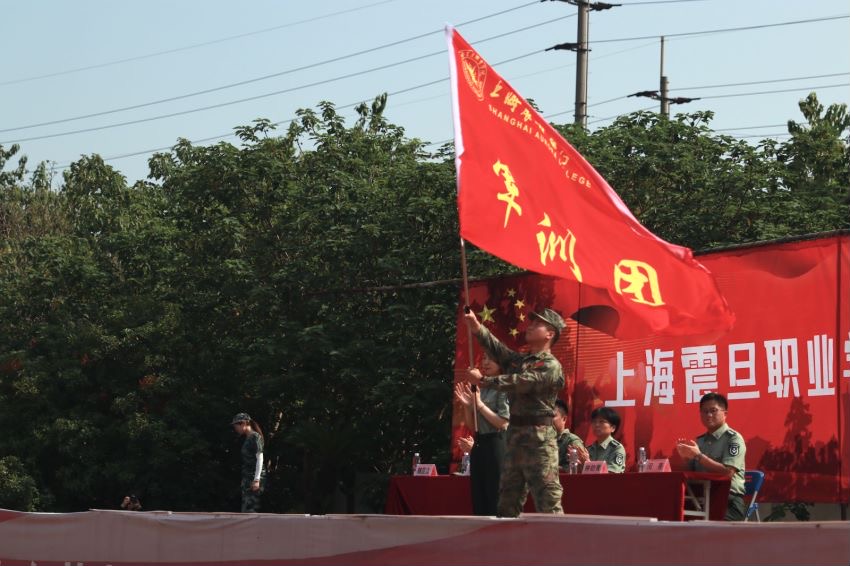 鐘劼菁處長為本次軍訓授軍訓團團旗。一旗授,一營成。少年不懼歲月長,青春意氣凌九霄,未曾拼盡全力,何談肆意揮灑青春。