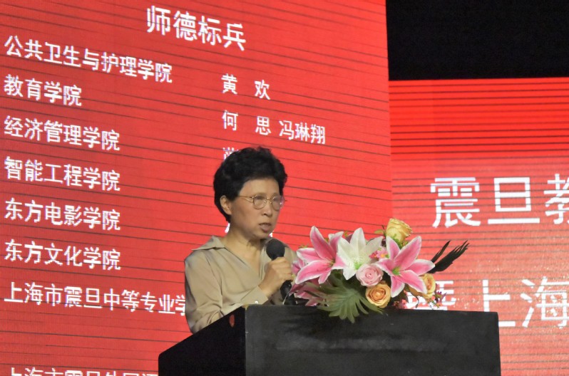 震旦教育集團(tuán)創(chuàng)始人、管委會主任張惠莉介紹了上海震旦職業(yè)學(xué)院新任校長,并表達(dá)對全體教職工的節(jié)日祝福。