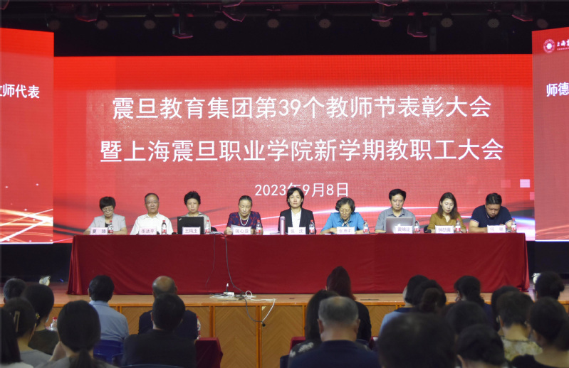 9月8日上午,震旦教育集團(tuán)第39個教師節(jié)表彰大會暨上海震旦職業(yè)學(xué)院新學(xué)期教職工大會在校大禮堂隆重召開。震旦教育集團(tuán)創(chuàng)始人、管委會主任張惠莉,震旦教育集團(tuán)董事長張沈,震旦職業(yè)學(xué)院黨委書記黃晞建,震旦職業(yè)學(xué)院校長,震旦職業(yè)學(xué)院黨委副書記夏臻,震旦職業(yè)學(xué)院副校長王純玉,震旦進(jìn)修學(xué)院常務(wù)副院長張達(dá)平,震旦中等專業(yè)學(xué)校校長鐘劼菁,震旦外國語中學(xué)校長何明等領(lǐng)導(dǎo)出席大會,上海震旦職業(yè)學(xué)院全體教職工參加會議。大會由夏臻主持。