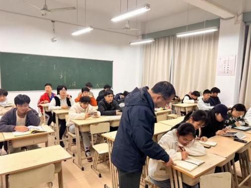 在晚自習(xí)教室,鄧凱院長詳細(xì)查看了2023級新生班級晚自習(xí)出勤率和學(xué)習(xí)情況。當(dāng)看到新生們都在認(rèn)真溫習(xí)功課時,鄧院長點頭贊許。他對同學(xué)們說,進(jìn)入大學(xué)后,課業(yè)緊張,任務(wù)繁重,好好利用晚自習(xí)的時間來埋頭學(xué)習(xí),才能更好、更快的掌握專業(yè)知識。大學(xué)生活并不像我們想象中那么輕松自在,相較高中階段有老師督促的被動式學(xué)習(xí),大學(xué)更需要自律性和自主性的學(xué)習(xí),希望同學(xué)們繼續(xù)保持優(yōu)良的學(xué)風(fēng),認(rèn)真學(xué)習(xí),不辜負(fù)大學(xué)時光。