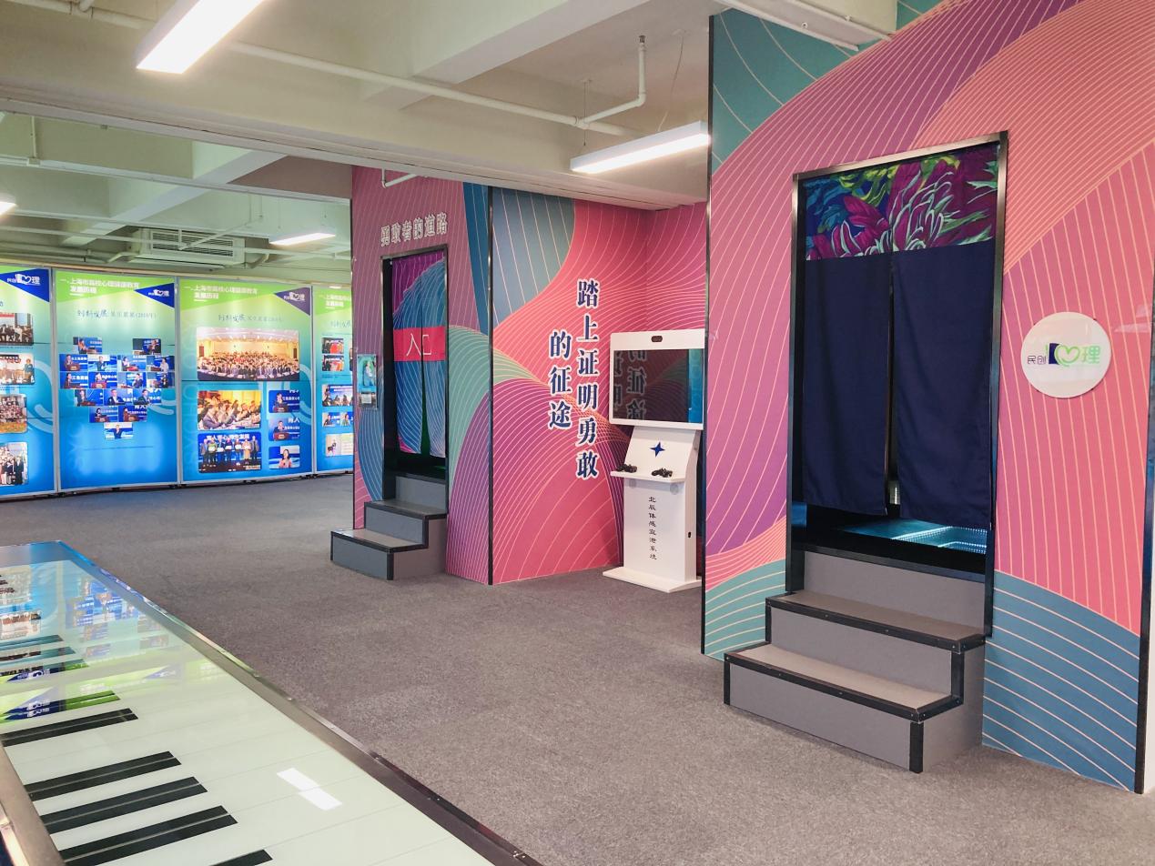 我校承建的上海市民辦高校心理健康教育基地在“政府支持、專家領(lǐng)銜、高校參與、社會協(xié)同”的體系下,通過5年的建設(shè),目前已形成以光影藝術(shù),互動體驗裝置,智能化體驗為核心,充滿科技感,體驗感;集藝術(shù)、科技、娛樂于一體的綜合性體驗中心;并建有“網(wǎng)絡(luò)智能”自主心理健康教育系統(tǒng),形成了集“展示、研究、交流、實訓(xùn)一體化”的綜合性功能平臺。擁有目前全國唯一一所心理健康教育專業(yè)館。