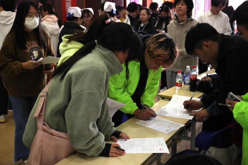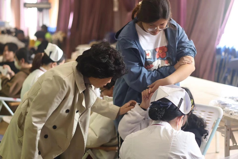 同學(xué)們?cè)谥驹刚叩囊龑?dǎo)下有序進(jìn)行填表登記、測(cè)量血壓、體檢化驗(yàn)等。我校公共衛(wèi)生與護(hù)理學(xué)院的學(xué)生積極參與獻(xiàn)血,他們作為一名未來(lái)的醫(yī)務(wù)工作者,更明白血液對(duì)于臨床患者的重要意義。22護(hù)理6班姚欣雨和朱夢(mèng)瑤同學(xué)接受采訪時(shí)表示,今年是她們第二次參加獻(xiàn)血活動(dòng)。獻(xiàn)血是作為一名大學(xué)生應(yīng)盡的社會(huì)責(zé)任,希望今后能繼續(xù)用自己的行動(dòng),帶動(dòng)身邊人積極參與到獻(xiàn)愛心活動(dòng)中。