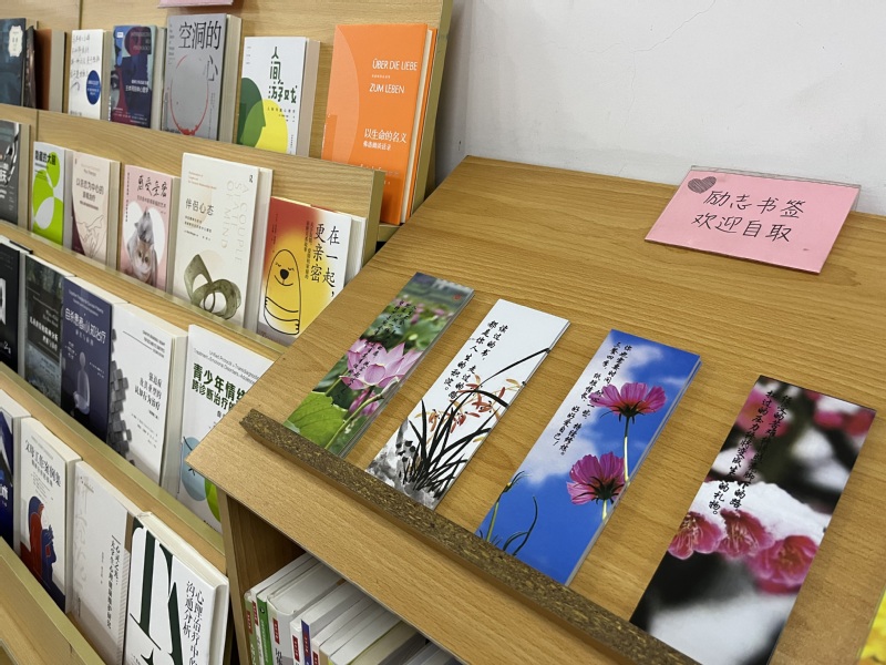 此次推薦圖書涉及心理普及類讀物、針對特定問題的專業(yè)書籍,另有心理健康中心制作的勵志書簽供讀者免費取用。期待能夠以書香為師生帶來心靈的慰籍。