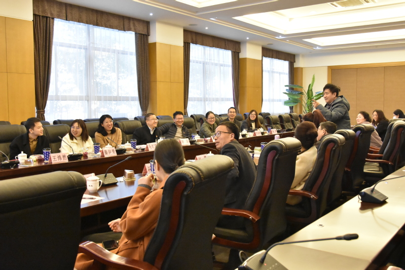 黨委書記黃晞建致歡迎辭,歡迎海洋大學(xué)黨委組織部及心理健康研究教育中心的到來(lái),希望通過(guò)互訪與交流,積累學(xué)習(xí)工作經(jīng)驗(yàn),從而積極推進(jìn)思政隊(duì)伍建設(shè),在思想共學(xué)、組織共建、品牌共筑、成效共享等方面進(jìn)行互動(dòng)聯(lián)動(dòng)。
