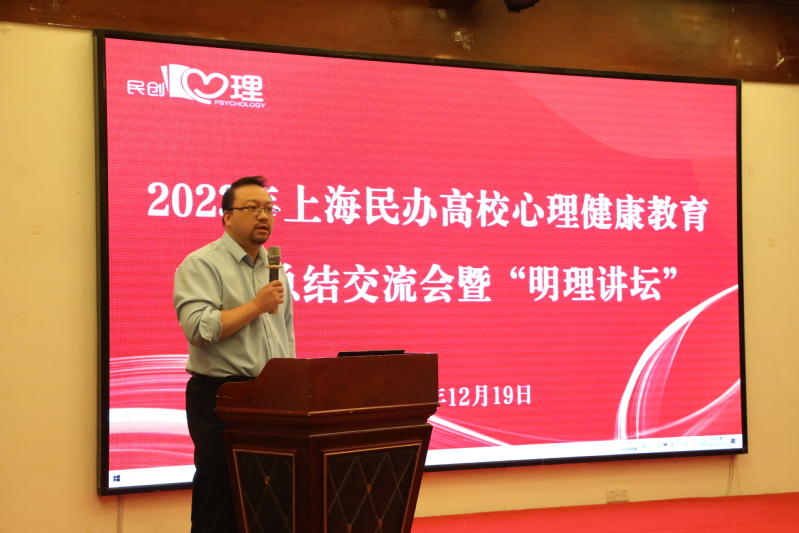 12月19日——20日,上海民辦高校心理健康教育總結(jié)交流會暨“明理講壇”在寶山區(qū)羅溪書院隆重召開。上海市民辦高校黨工委領(lǐng)導(dǎo)周光狼,全國高職高專思想政治理論課建設(shè)聯(lián)盟副秘書長、上海出版印刷高等??茖W(xué)校馬克思主義學(xué)院院長馬前鋒,上海震旦職業(yè)學(xué)院黨委書記、中國心理協(xié)會大學(xué)生心理咨詢委員會副主任黃晞建,上海震旦職業(yè)學(xué)院校長蔣心亞、黨委副書記夏臻,以及各民辦高校分管學(xué)生工作的副書記或副校長、學(xué)生工作部門負(fù)責(zé)人、心理健康教育中心主任等60余人參加了會議。會議由黨委副書記夏臻主持。