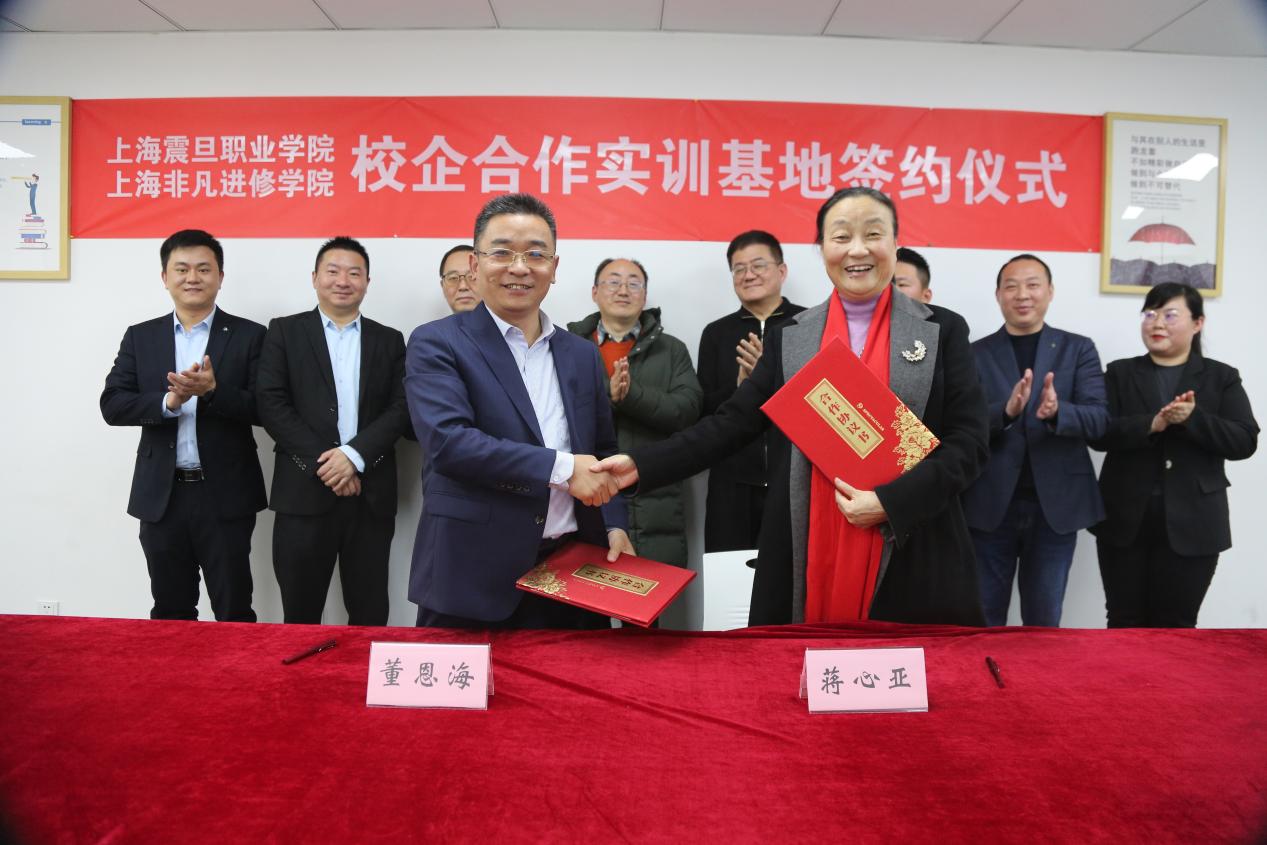 為進(jìn)一步深入貫徹落實(shí)黨中央、國務(wù)院關(guān)于高校畢業(yè)生穩(wěn)就業(yè)、促就業(yè)的決策部署,進(jìn)一步深化校企合作共建,2024年2月28日上午,上海震旦職業(yè)學(xué)院與上海非凡進(jìn)修學(xué)院順利舉行校企合作實(shí)訓(xùn)基地簽約揭牌儀式。上海非凡進(jìn)修學(xué)院院長董恩海、副院長余成龍、副院長呂開科,上海震旦職業(yè)學(xué)院校長蔣心亞、實(shí)訓(xùn)中心主任溫佐剛、東方電影學(xué)院院長郜明、智能工程學(xué)院院長鄧凱、就業(yè)指導(dǎo)中心主任陶俊杰等參加了此次簽約揭牌儀式。