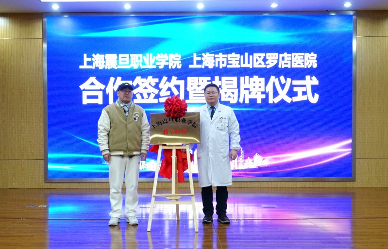 實踐辦主任溫佐剛與羅店醫(yī)院副院長趙亮共同為“上海震旦職業(yè)學(xué)院教學(xué)醫(yī)院”揭牌。