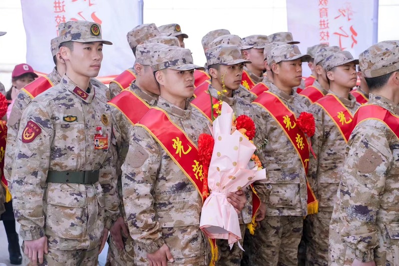 歡送會(huì)現(xiàn)場(chǎng),經(jīng)過(guò)體檢檢查、政治考核、役前教育等層層篩選的新兵們,胸帶大紅花、身著戎裝、身姿挺拔、精神抖擻、眼神堅(jiān)定,充滿著對(duì)軍營(yíng)生活的美好憧憬。