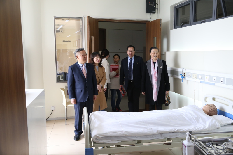 簽約儀式后,張建國(guó)院長(zhǎng)一行參觀了公共衛(wèi)生與護(hù)理學(xué)院實(shí)訓(xùn)中心,重點(diǎn)參觀了重癥監(jiān)護(hù)實(shí)訓(xùn)室、外科仿真實(shí)訓(xùn)室、急救實(shí)訓(xùn)室、健康照護(hù)實(shí)訓(xùn)室、母嬰實(shí)訓(xùn)室等特色實(shí)訓(xùn)室的儀器設(shè)備和實(shí)訓(xùn)項(xiàng)目。