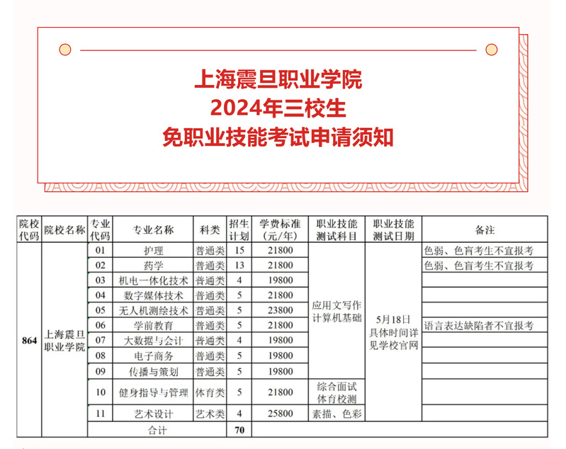 2024年三校生職業(yè)技能測(cè)試免試申請(qǐng)須知