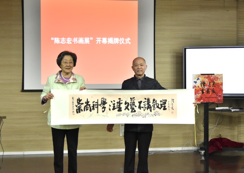 震旦教育集團創(chuàng)始人、震旦教育發(fā)展基金會理事長張惠莉與著名海派書畫家陳志宏共同為“陳志宏書畫展”揭幕。