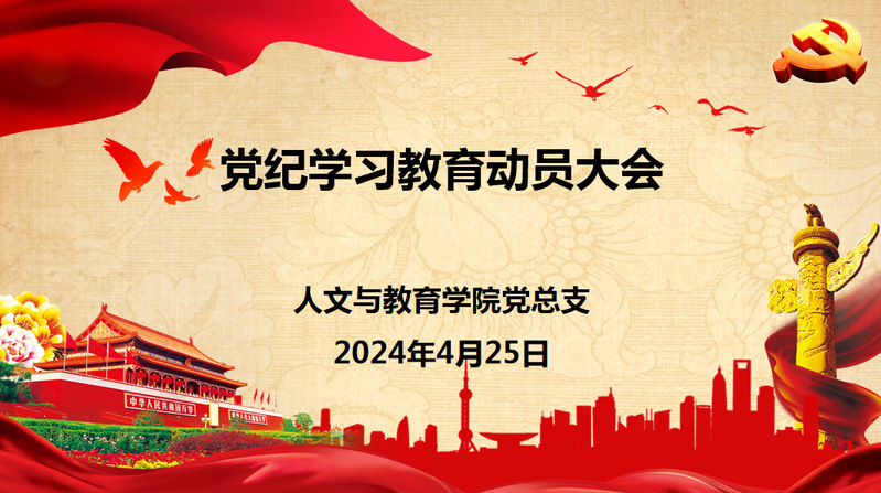 2024年4月25日中午,人文與教育學(xué)院黨總支召開(kāi)黨紀(jì)學(xué)習(xí)教育動(dòng)員大會(huì),學(xué)院全體師生黨員參會(huì)。會(huì)議由人文與教育學(xué)院黨總支書記、副院長(zhǎng)張石偉主持。