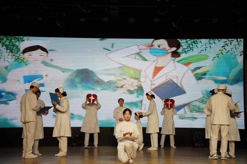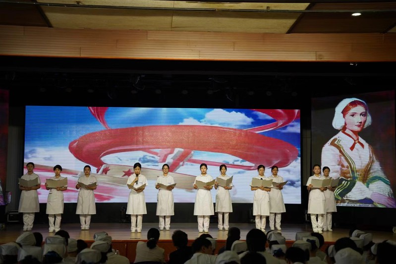 23級(jí)五年一貫制的詩(shī)朗誦“可敬的護(hù)士”,鼓舞同學(xué)們繼承和發(fā)揚(yáng)護(hù)理事業(yè)的光榮傳統(tǒng),以愛的名義堅(jiān)守使命和責(zé)任。