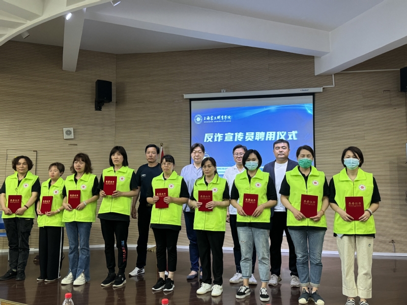 與會(huì)領(lǐng)導(dǎo)向宿管工作人員、各宿舍樓樓層長頒發(fā)反詐宣傳員聘書。