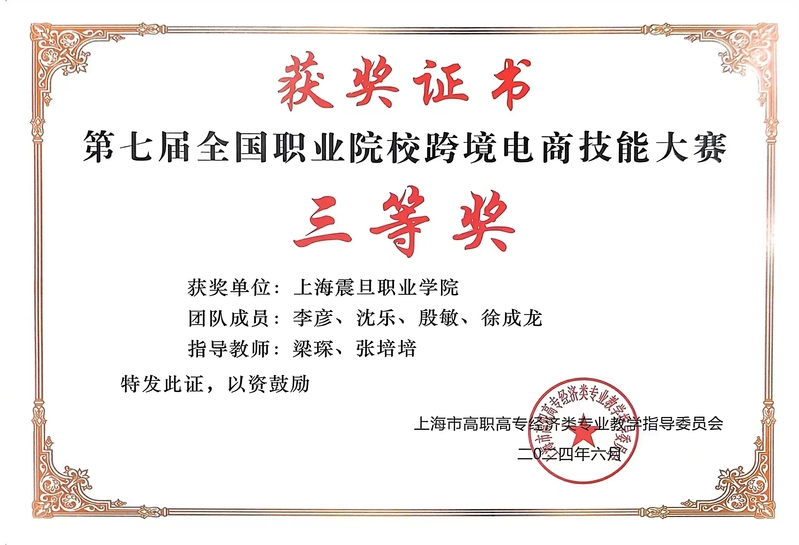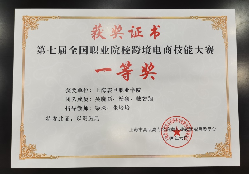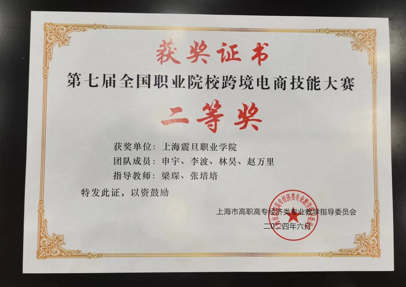 2024年5月25日,由上海市高職高專經(jīng)濟類專業(yè)教學指導委員會、上海跨境電子商務行業(yè)協(xié)會主辦的第七屆全國職業(yè)院??缇畴娚碳寄艽筚惵湎箩∧弧?/span>我校經(jīng)濟管理學院教師梁琛、張培培、陳潔帶領高職電子商務、酒店管理專業(yè)15名學生及五年一貫制電子商務專業(yè)4名學生參賽,獲得團體一等獎一項,二等獎三項,三等獎一項,三位教師分別獲得“優(yōu)秀指導教師獎”。