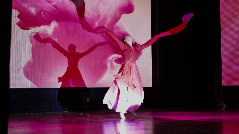 2022級(jí)學(xué)生在高敏老師的指導(dǎo)下,通過(guò)現(xiàn)代舞基礎(chǔ)訓(xùn)練,提升了動(dòng)作質(zhì)感與表達(dá)多樣性,深化了對(duì)身心平衡與個(gè)體潛能的認(rèn)知,展現(xiàn)了現(xiàn)代舞蹈的創(chuàng)新與活力。匯報(bào)展示中,不僅包含課堂教學(xué)的精華展示,還有學(xué)生們精心準(zhǔn)備的舞蹈劇目,從單人舞到群舞,形式多樣,風(fēng)格各異,全面檢驗(yàn)了學(xué)生們的綜合藝術(shù)素養(yǎng)與團(tuán)隊(duì)合作能力,體現(xiàn)了東方電影學(xué)院戲劇影視表演專業(yè)致力于培養(yǎng)學(xué)生全面發(fā)展的教學(xué)理念。從活動(dòng)籌備到現(xiàn)場(chǎng)技術(shù)支持,包括海報(bào)設(shè)計(jì)、音視頻制作、舞美燈光、服化道等,均出自表演專業(yè)學(xué)生之手,充分體現(xiàn)了學(xué)生的實(shí)踐能力和創(chuàng)新精神,也為他們的職業(yè)生涯鋪墊了堅(jiān)實(shí)基石。