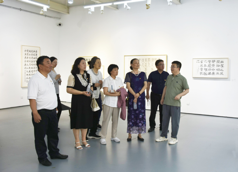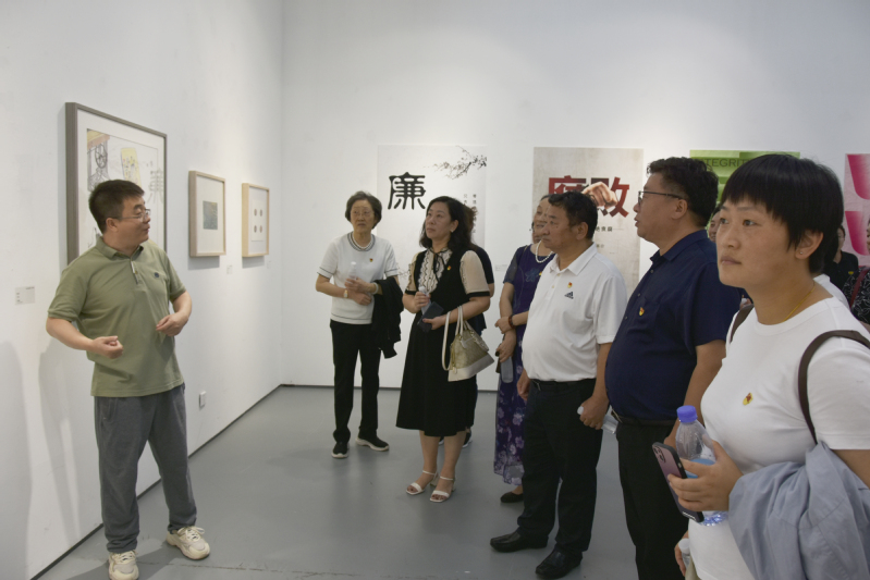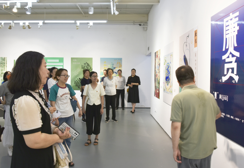 接著,到上海大學(xué)美術(shù)學(xué)院參觀《賡續(xù)紅色基因 涵養(yǎng)清風(fēng)正氣——上海大學(xué)黨紀(jì)學(xué)習(xí)教育廉潔文化美術(shù)作品展》,上海大學(xué)美術(shù)學(xué)院賀戈蕭老師全程講解。上海美術(shù)學(xué)院的師生們,用好用活老上大的紅色文化資源,充分利用自己的才華和智慧,通過筆墨的揮灑和靈感的觸發(fā),創(chuàng)作出一幅幅富有創(chuàng)意和感染力的廉潔文化主題作品。展覽涵蓋書法、繪畫、設(shè)計、手工藝等類型,這些作品或雄渾磅礴,或純真活潑,或寓意深遠(yuǎn),或簡潔生動,從不同角度闡釋廉潔文化的內(nèi)涵,以不同風(fēng)格表達(dá)對廉潔的理解和詮釋,使參觀者在欣賞美的同時,也能感受到廉潔文化的熏陶和啟迪。