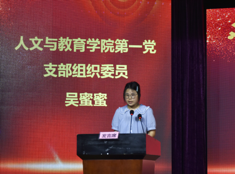 人文與教育學(xué)院第一黨支部書記吳蜜蜜發(fā)言。她介紹了人文與教育學(xué)院第一黨支部的工作特色,并表示將繼續(xù)認真貫徹落實黨中央的學(xué)習(xí)要求,積極認真履行各項職責,充分發(fā)揮基層黨支部的戰(zhàn)斗堡壘作用,奮力譜寫民辦高?;鶎狱h組織建設(shè)新的篇章。