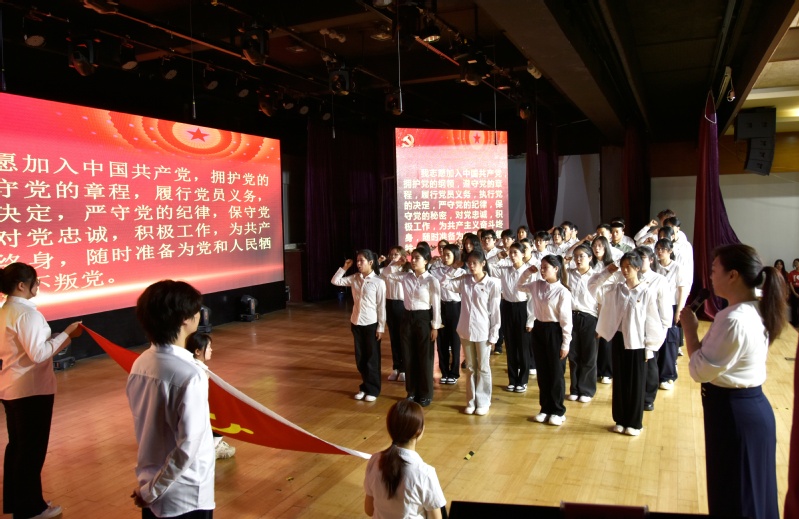 “我志愿加入中國共產(chǎn)黨,擁護黨的綱領(lǐng),遵守黨的章程......”, 黨委副書記黃敏帶領(lǐng)預(yù)備黨員同志進行了入黨宣誓。
