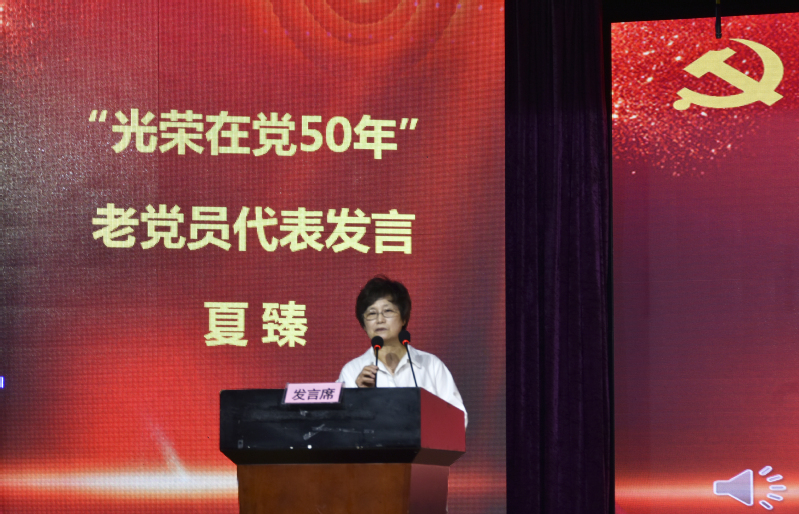 張惠莉理事長向原上海震旦職業(yè)學(xué)院黨委副書記夏臻同志頒發(fā)了“光榮在黨50年”紀念章。