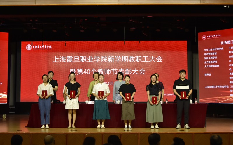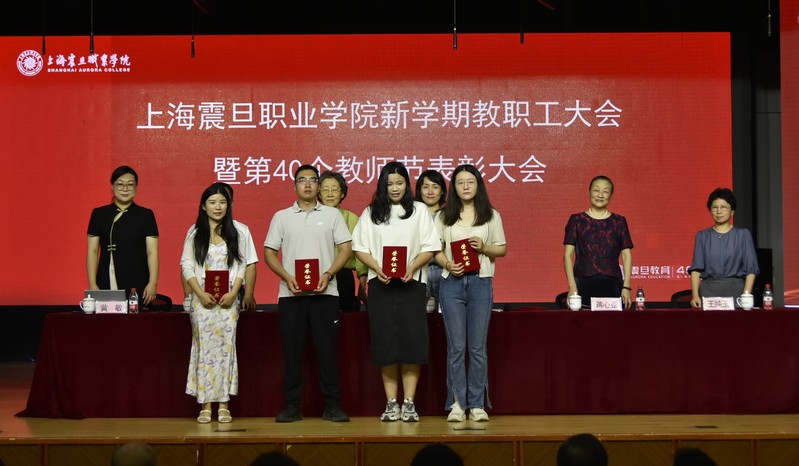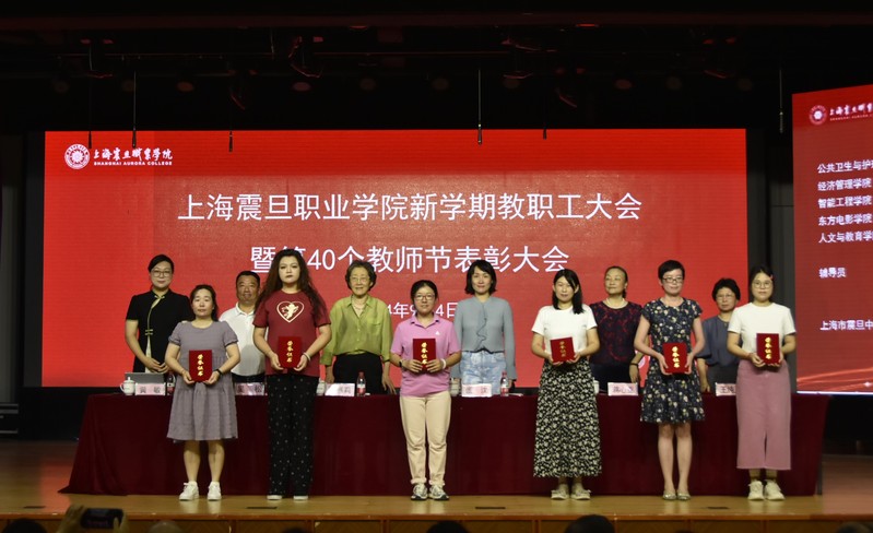 9月4日上午,上海震旦職業(yè)學(xué)院第40個教師節(jié)表彰大會暨新學(xué)期教職工大會在校大禮堂隆重召開。震旦教育集團(tuán)創(chuàng)始人、管委會主任張惠莉,震旦教育集團(tuán)董事長張沈,震旦職業(yè)學(xué)院黨委書記吳松,校長蔣心亞,黨委副書記黃敏,副校長王純玉等領(lǐng)導(dǎo)出席大會,上海震旦職業(yè)學(xué)院全體教職工參加會議。大會由黃敏主持。