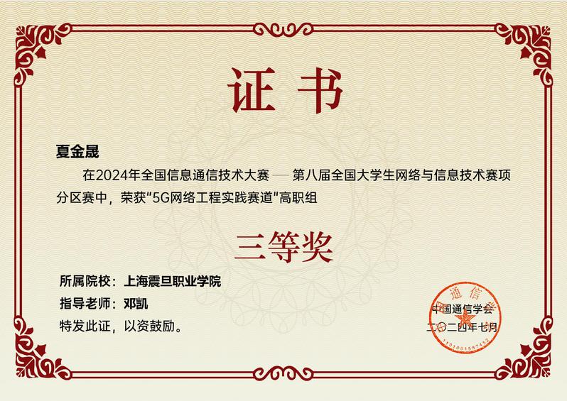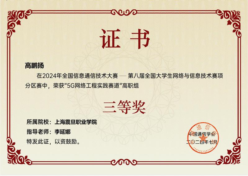 近日,第八屆全國大學(xué)生網(wǎng)絡(luò)與信息技術(shù)大賽總決賽在成都舉行。我校智能工程學(xué)院的3名學(xué)生在“5G網(wǎng)絡(luò)工程實(shí)踐賽”中榮獲3個(gè)三等獎(jiǎng)。