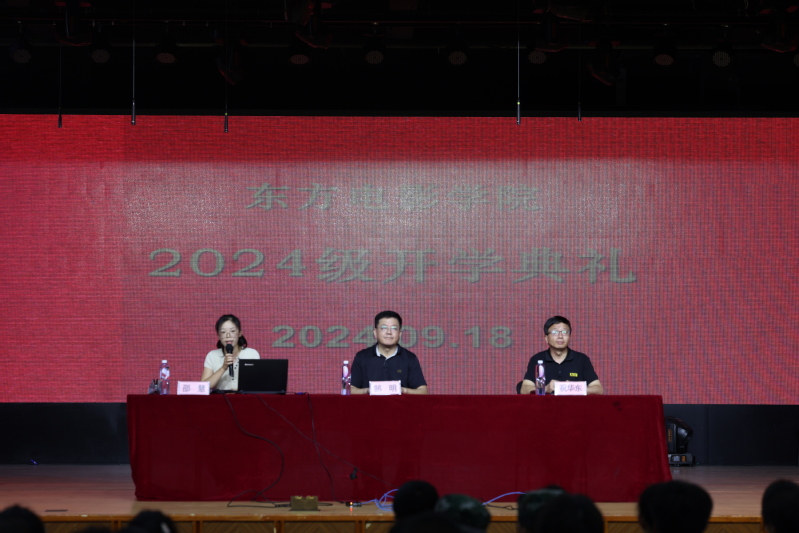 9月18日中午,東方電影學院在學校禮堂舉行了2024級新生開學典禮暨入學教育大會。東方電影學院院長郜明,副院長、黨總支書記祝華東,黨總支副書記邵慧,學院各專業(yè)主任、實訓室主任、教師代表、全體輔導員以及2024級新生參加了大會。大會由邵慧副書記主持。