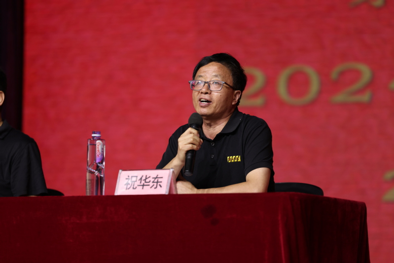 祝華東副院長介紹了東方電影學院的發(fā)展歷程、專業(yè)建設、教學改革及產(chǎn)教融合所取得的成果,分享了師生近期取得的成就。他以“明確目標、肩負擔當、練就技能”三句話激勵新生,強調(diào)設定目標、承擔責任和提升技能的重要性。他鼓勵新生勇敢面對機遇與挑戰(zhàn),設定清晰目標,肩負學習重任、社會責任及民族復興使命,專注專業(yè)技能培養(yǎng),提升職場競爭力,書寫精彩人生篇章。
