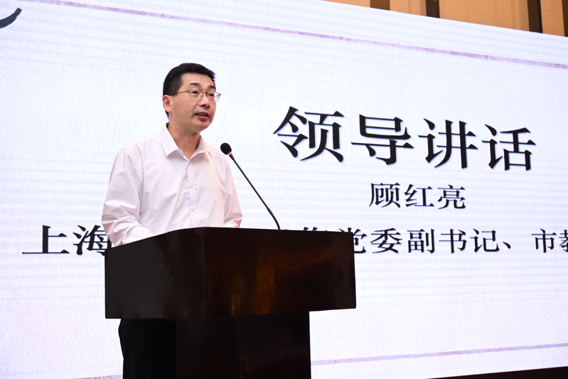 上海市教衛(wèi)工作黨委副書記、市教委副主任顧紅亮講話。顧書記在講話中強(qiáng)調(diào),當(dāng)前上海教育系統(tǒng)正在深入貫徹落實(shí)習(xí)近平總書記在全國教育大會上的重要講話精神,高等院校,特別是職業(yè)院校和民辦高校,要聚焦立德樹人,著力發(fā)揮思政課和課程思政示范課程、示范團(tuán)隊(duì)的引領(lǐng)輻射作用,探索舉辦更多類似英語聯(lián)賽這樣的師生喜聞樂見的課程思政活動,不斷提高育人成效;要著力推進(jìn)產(chǎn)教融合,促進(jìn)師資共享、平臺共享、資源共享,在課程教學(xué)、實(shí)踐實(shí)習(xí)、創(chuàng)新創(chuàng)業(yè)等方面開展更高水平的協(xié)同協(xié)作,推進(jìn)“長三角教育一體化”高質(zhì)量發(fā)展;要持續(xù)發(fā)揮英語聯(lián)賽對于思政教育的促進(jìn)作用,也要守正創(chuàng)新不斷提升比賽內(nèi)涵,提升大賽的質(zhì)量和能級,匯聚起磅礴力量支撐教育強(qiáng)國建設(shè),促進(jìn)中國式現(xiàn)代化建設(shè)目標(biāo)早日實(shí)現(xiàn)。在講話的最后,顧書記宣布第五屆長三角“中國故事”教師英語微課大賽、第六屆長三角應(yīng)用型高?!爸袊适隆庇⒄Z視頻大賽正式啟動。