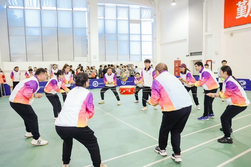 本屆拓展活動共設(shè)五個集體項目,每個賽項均考驗團(tuán)隊的協(xié)作能力、應(yīng)變能力和精神意志。在“力拔山河”項目中,王純玉副校長親自上場參賽,16位隊員心往一處想,勁往一處使,最終戰(zhàn)勝同濟(jì)大學(xué),充分展現(xiàn)了震旦人上下同心、奮力拼搏的精氣神。在“意氣相投”項目中,我校代表隊突破自我,投射6發(fā)6中,這份默契與成長,將成為我們?nèi)蘸蠊ぷ髦凶顚氋F的財富。