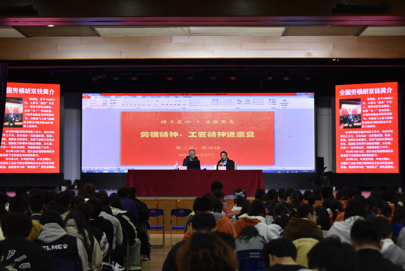 11月27日下午,我校邀請全國勞動模范、全國“五一”勞動獎?wù)?、上海市質(zhì)量金獎等榮譽(yù)稱號的獲得者胡雙錢作《工匠精神培養(yǎng)與傳承》主題報告。校黨委書記吳松、副校長王純玉、學(xué)工部長(處長)鐘劼菁、各二級學(xué)院書記及師生代表500余人聆聽了報告。報告會由吳松書記主持。