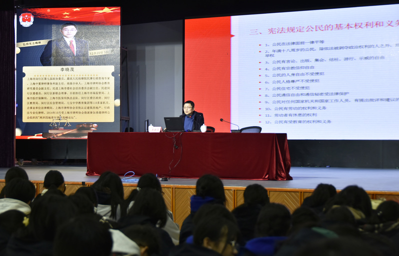 李律師以憲法基本知識為切入點(diǎn),并根據(jù)我校同學(xué)們的特點(diǎn)和思想認(rèn)知,圍繞憲法的基本價值、憲法賦予公民的權(quán)利、憲法規(guī)定的義務(wù)等與個人有關(guān)的內(nèi)容進(jìn)行了詳細(xì)講解,讓同學(xué)們更加深刻地了解憲法。同時,通過真實(shí)案例,剖析憲法在現(xiàn)實(shí)生活中的應(yīng)用,增強(qiáng)我校師生的法律意識。