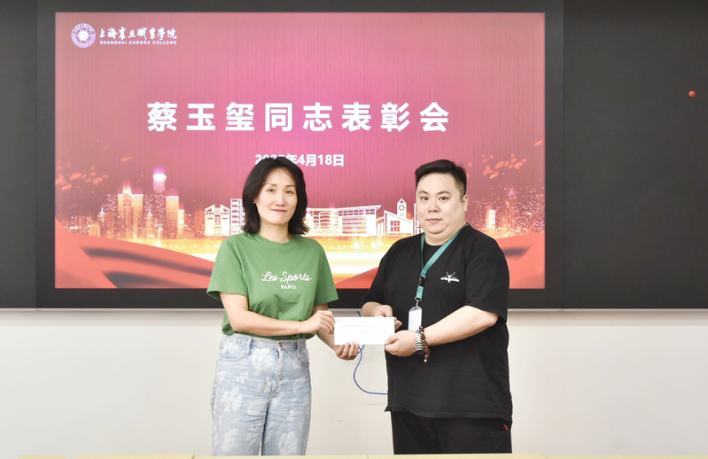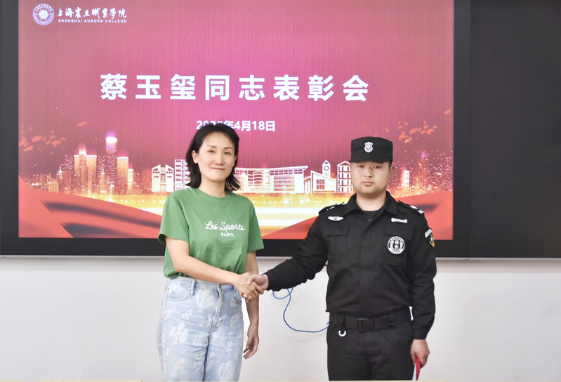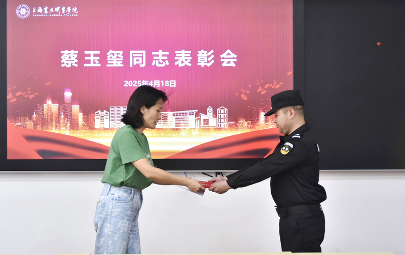 表彰會上,董事長張沈向蔡玉璽所在的英佩設(shè)施管理服務(wù)有限公司遞交了表揚信,信中對蔡玉璽高度負責(zé)的工作態(tài)度給予了充分肯定和贊揚,隨后為蔡玉璽頒發(fā)了“校園安全衛(wèi)士”獎狀和獎金。
