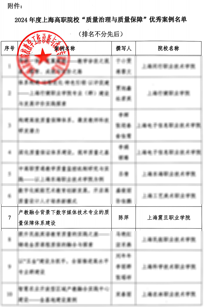 為深入學(xué)習(xí)貫徹習(xí)近平總書記在全國教育大會上的重要講話精神,推進(jìn)職業(yè)院校質(zhì)量治理與保障體系建設(shè)的創(chuàng)新發(fā)展,實(shí)現(xiàn)“辦學(xué)能力高水平、產(chǎn)教融合高質(zhì)量”,更好適應(yīng)新時代、新階段、新要求,上海市高職院校教學(xué)診斷與改進(jìn)專家委員會于2024年12月開展了2024年度高職院校“質(zhì)量治理與質(zhì)量保障”案例征集工作。