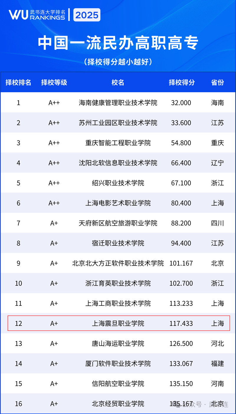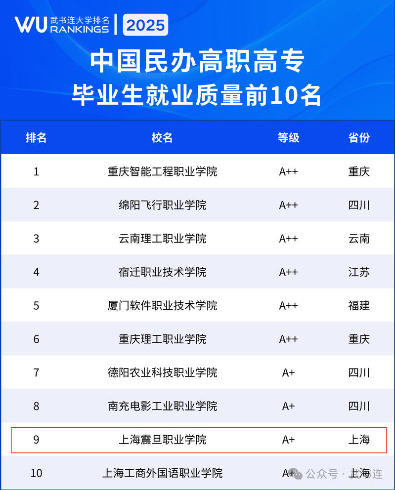 近日,國(guó)內(nèi)知名教育評(píng)估機(jī)構(gòu)武書(shū)連團(tuán)隊(duì)正式發(fā)布《2025中國(guó)高職高專(zhuān)院校評(píng)價(jià)報(bào)告》。上海震旦職業(yè)學(xué)院上榜“中國(guó)一流民辦高職高專(zhuān)”,位列全國(guó)第12名,其中核心指標(biāo)“畢業(yè)生就業(yè)質(zhì)量”躋身上海民辦高職高專(zhuān)首位。