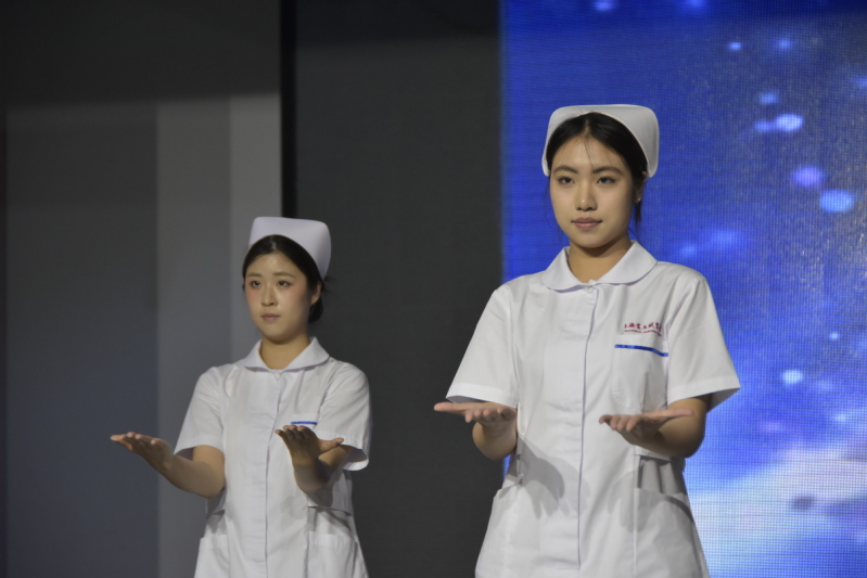 2024級護(hù)理專業(yè)學(xué)生們以現(xiàn)代舞《目光織就天使羽翼》演繹護(hù)理日常,飄動的白衣恰似穿梭在病房的云朵,指尖劃出的弧線勾勒出生與死之間的溫度。