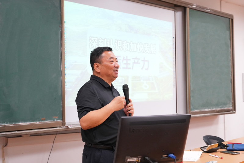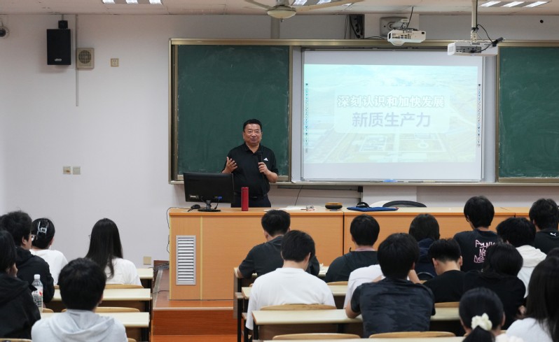 課上,吳松書記結(jié)合當(dāng)下國際國內(nèi)形勢,深入剖析了新質(zhì)生產(chǎn)力的內(nèi)涵、特征與發(fā)展意義。通過列舉大量生動鮮活的案例,詳細闡述了新質(zhì)生產(chǎn)力在推動產(chǎn)業(yè)升級、科技創(chuàng)新等方面的重要作用,并鼓勵同學(xué)們努力學(xué)習(xí)專業(yè)知識,提升自身能力,為將來投身新質(zhì)生產(chǎn)力發(fā)展奠定堅實基礎(chǔ)。