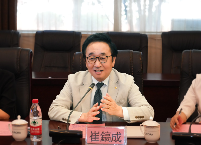 崔鎬成副校長對(duì)上海震旦職業(yè)學(xué)院的熱情接待表示感謝,并介紹了慶云大學(xué)的辦學(xué)情況及國際合作經(jīng)驗(yàn)。他指出,慶云大學(xué)具備碩博培養(yǎng)體系,以航空、保健為特色,專業(yè)涵蓋多領(lǐng)域,與我校的護(hù)理、無人機(jī)測繪技術(shù)、現(xiàn)代物流管理等多專業(yè)高度契合,雙方在專業(yè)共建領(lǐng)域具有廣闊合作空間。崔校長還表示,慶云大學(xué)高度重視與中國高校的合作,期待與震旦職業(yè)學(xué)院在學(xué)術(shù)研究、師生交換、聯(lián)合培養(yǎng)、科研合作等領(lǐng)域開展多層次、寬領(lǐng)域的合作,實(shí)現(xiàn)資源共享、優(yōu)勢互補(bǔ)。