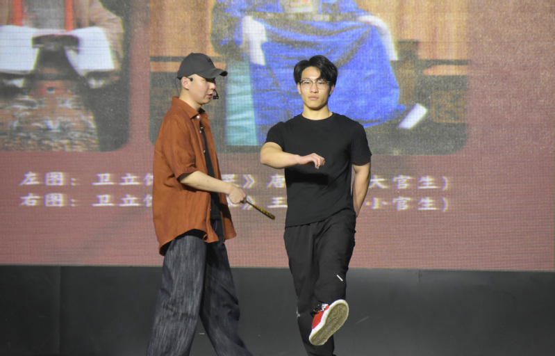 互動環(huán)節(jié),衛(wèi)立老師邀請幾位學(xué)生上臺,親自指導(dǎo)他們學(xué)習(xí)昆劇的基本身段和動作。通過互動體驗,完成了一次從理論認知到實踐體驗的藝術(shù)熏陶,不僅讓在場學(xué)生加深了對昆曲的理解,更激發(fā)了他們對傳統(tǒng)文化的熱愛與傳承意識。