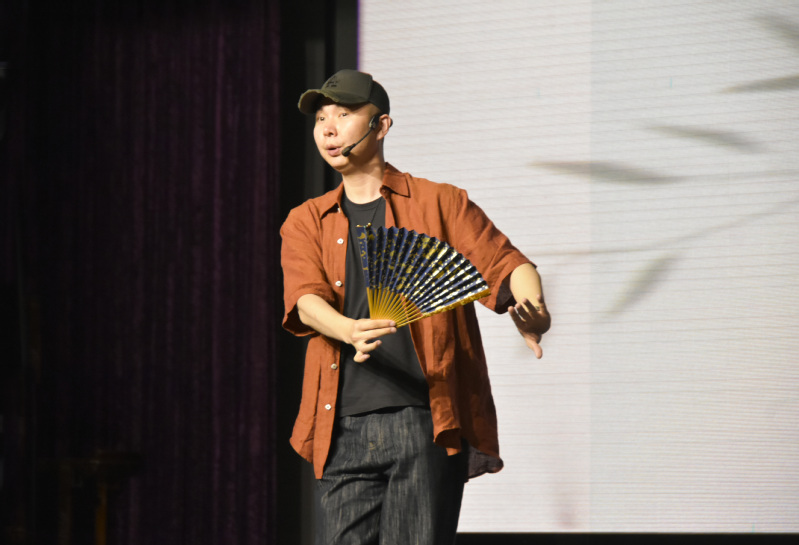 衛(wèi)立老師以通俗易懂、幽默風(fēng)趣的語言講解了“百戲之祖”——昆劇的起源與發(fā)展歷程、幾種代表性聲腔,并重點介紹了“生”這一行當,還帶來了昆劇名段《懶畫眉》的精彩表演,其深厚的藝術(shù)底蘊、精湛的技藝、婉轉(zhuǎn)的唱腔、優(yōu)雅的身段,贏得了在場師生的喝彩。