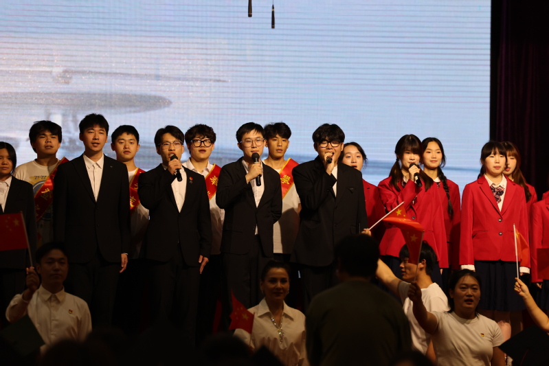 典禮最后,師生們深情合唱校歌《筑夢》。