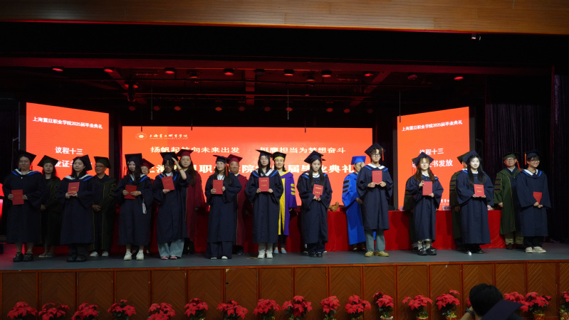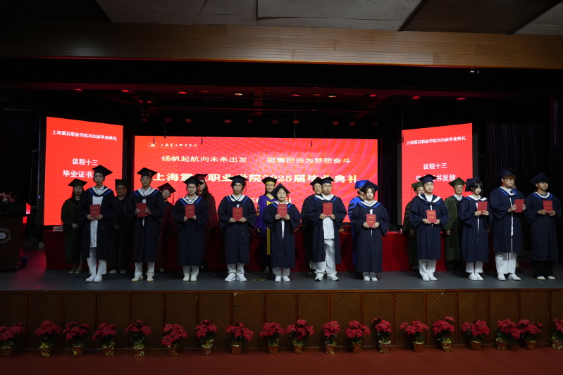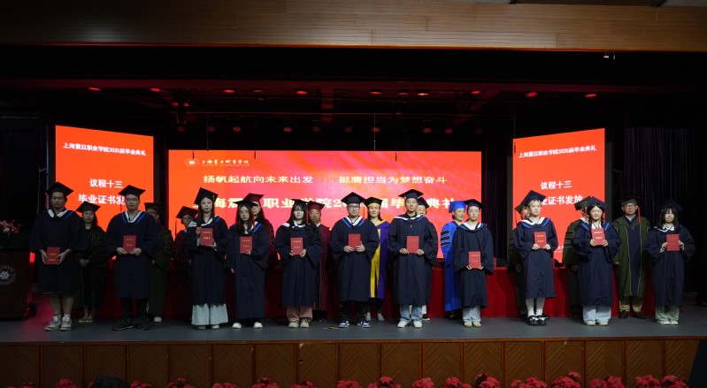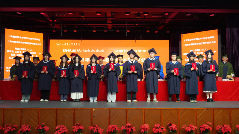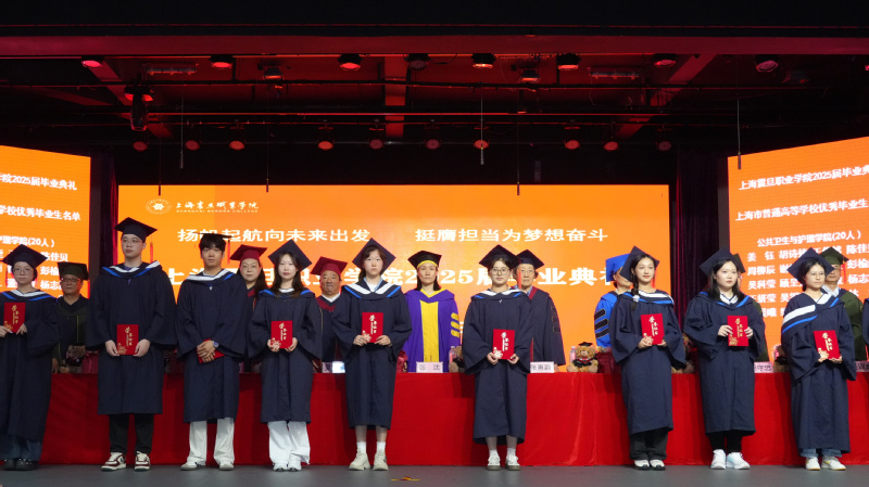 黨委副書記黃敏宣讀《關(guān)于表彰2025年上海市普通高校優(yōu)秀畢業(yè)生和上海震旦職業(yè)學(xué)院優(yōu)秀畢業(yè)生的決定》,校院領(lǐng)導(dǎo)為他們頒發(fā)了榮譽(yù)證書。