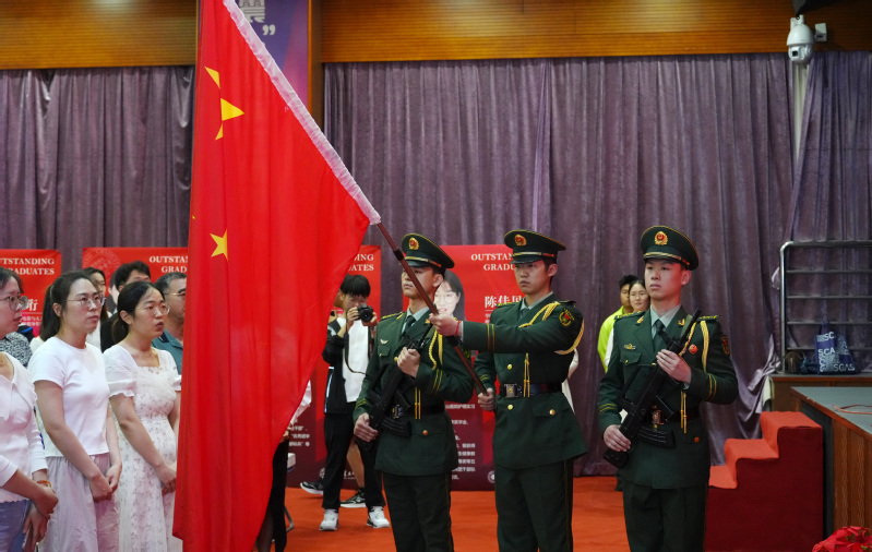 當(dāng)激昂的旋律在耳畔響起,當(dāng)深情的歌詞從心底涌出,全體師生沉浸在對祖國深深的熱愛與無盡的自豪之中。最后那句“我的母親,我的祖國”,更是將這份愛國之情推向了高潮,也拉開我校2025屆學(xué)生畢業(yè)典禮的序幕。